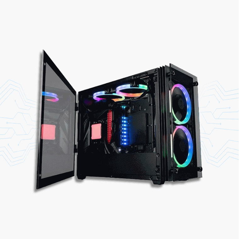 Ventiladores: Incluye 4 ventiladores ARGB de 120 mm preinstalados (3 frontales, 1 trasero en algunas versiones como Mini Stratos H609); soporta hasta 5 ventiladores totales (3 frontales, 1 trasero, 1 superior). La configuración exacta puede variar (ver notas).